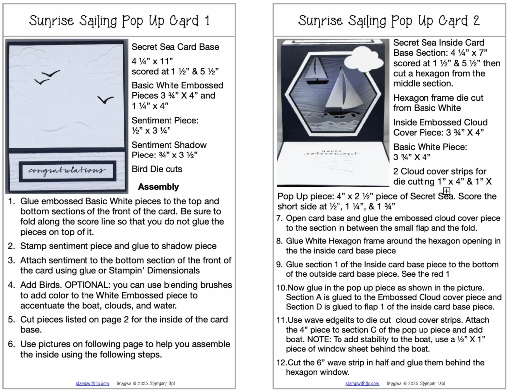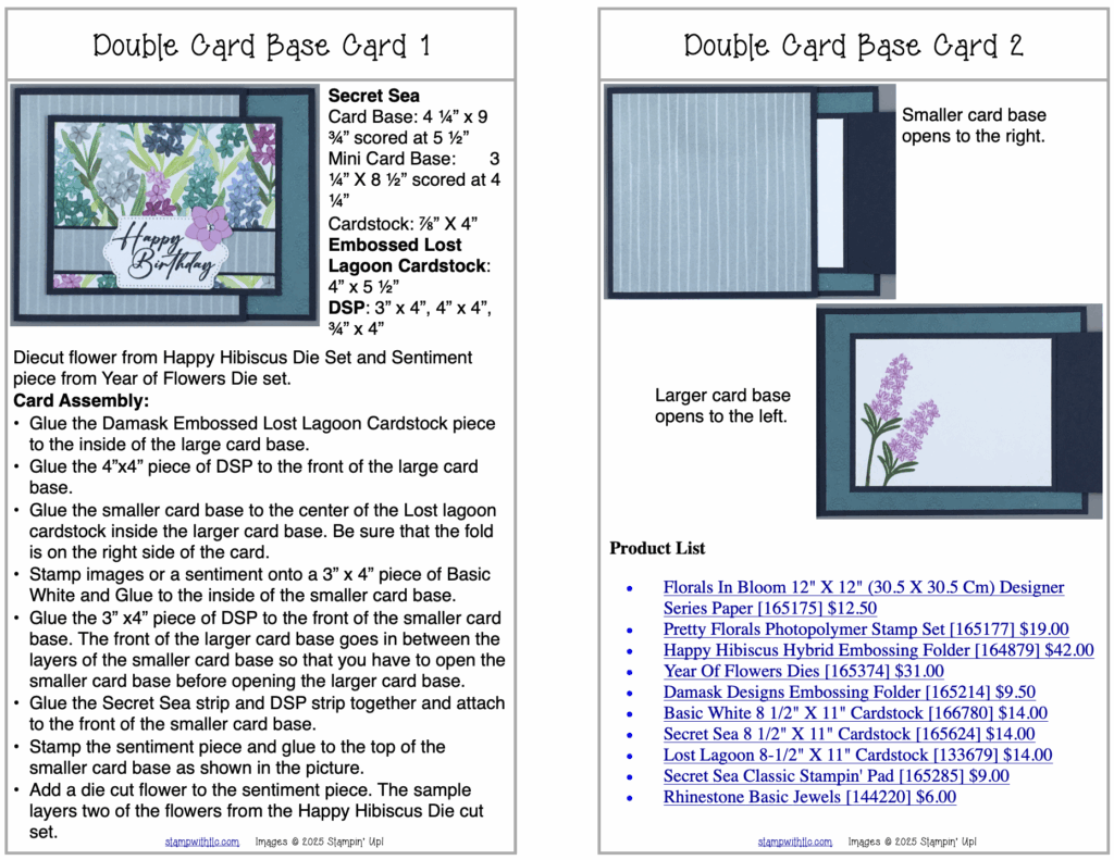 NOTE About Card Kits for Classes: Everything for your card kit is pre cut and ready to assemble unless otherwise indicated. Card kits never include stamped images, glue, or Stampin’ Dimensionals. It does include cardstock, die cuts, Designer Series Paper, ribbon, or other embellishments that are pictured in the class advertisement. Instructions for card kits can be found on my blog so if you miss class, you will still be able to assemble your cards.