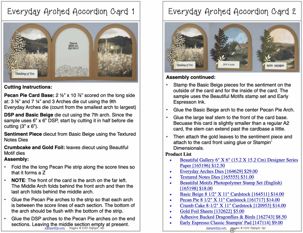 This is not a zoom card class. If you purchase this card kit you will be emailed a tutorial that will give you step by step instructions for assembling your card kits. As with any of my card kits, stamped images are not included. You will need to have your own stamps, ink, Stampin’ Dimensionals and glue to finish these card kits. All the paper will be pre-scored, cut and die cut for you. Each card kit is self contained in its own envelope for easy assembly. The adhesive backed dots will be in a separate bag.